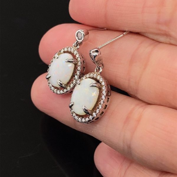 $85.00元の価格は $85.00 でした。$68.00現在の価格は $68.00 です。シルバー 天然石 ホワイトオパール イヤリング 342