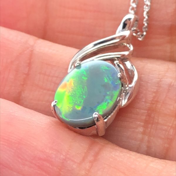 $1,500.00Original price was: $1,500.00.$800.00Current price is: $800.00.Claire – 18k White Gold Solid Black Opal Pendant 722