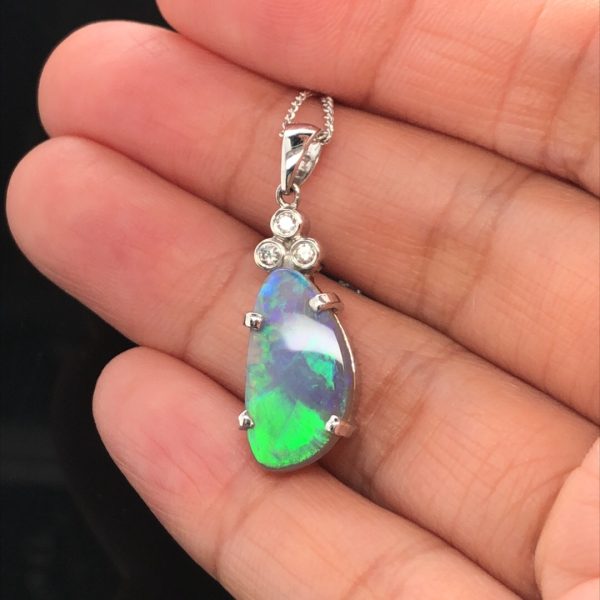 $1,200.00Original price was: $1,200.00.$750.00Current price is: $750.00.Grace – 18K White Gold Solid Black Opal Pendant with Diamond 999