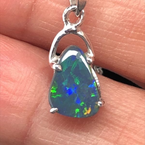 $1,790.00Original price was: $1,790.00.$1,500.00Current price is: $1,500.00.Neptune Blue – 18k Solid White Gold Black Opal Pendant 232