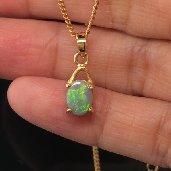 Hazel – 18k Yellow Gold Solid Black Opal Pendant 066
