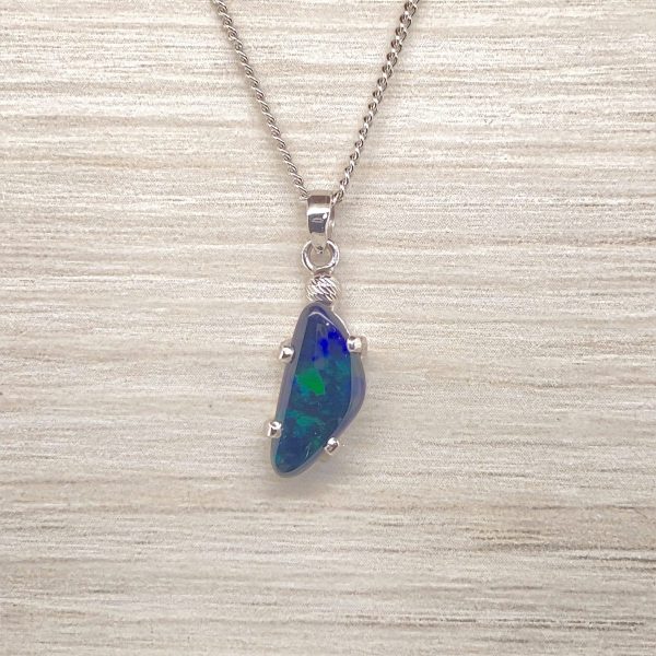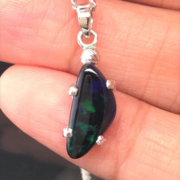 Cyan – 18k White Gold Solid Black Opal Pendant 682