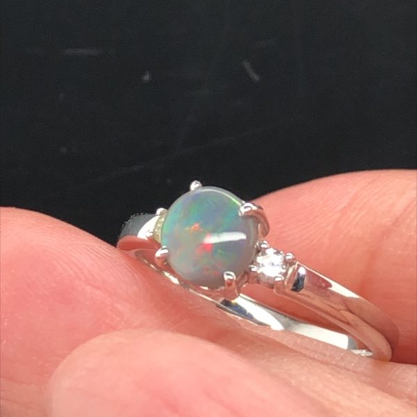 Wishful Thinking – 18k White Gold Solid Black Opal Ring with Diamonds 423A