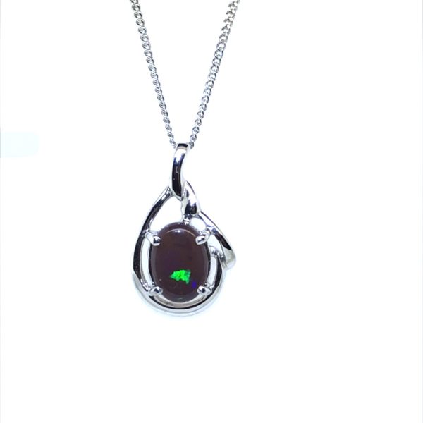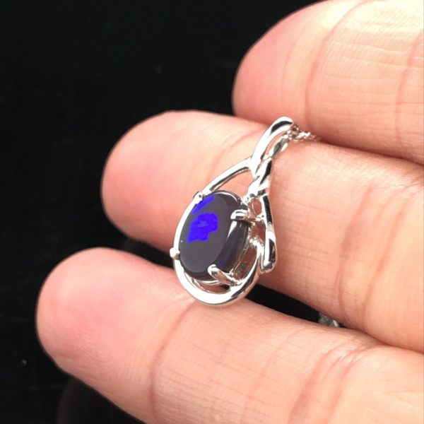 Elexis – 18k White Gold Solid Black Opal Pendant 843