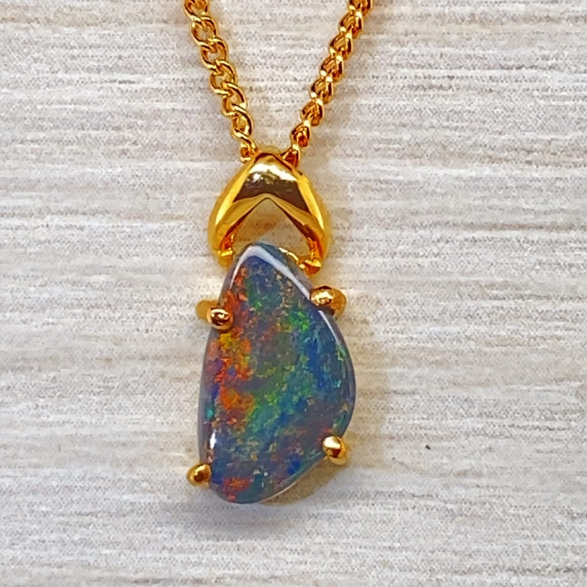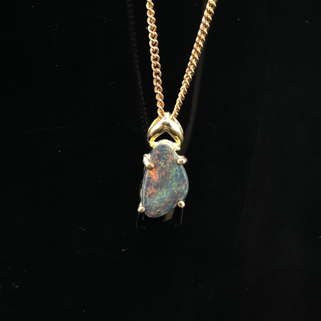 Aspyn – 18k Yellow Gold Solid Black Opal Pendant 958