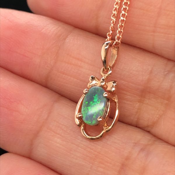 K9 Solid Black Opal Pendant 743B Rose Gold