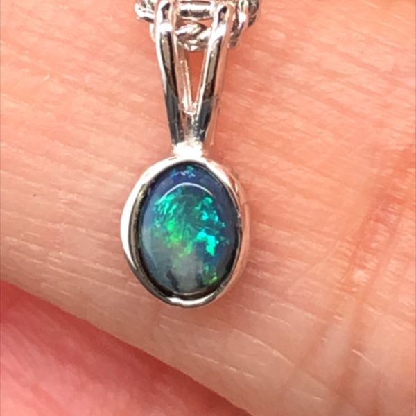Silver Black Rhodium Solid Black Opal Necklace 4