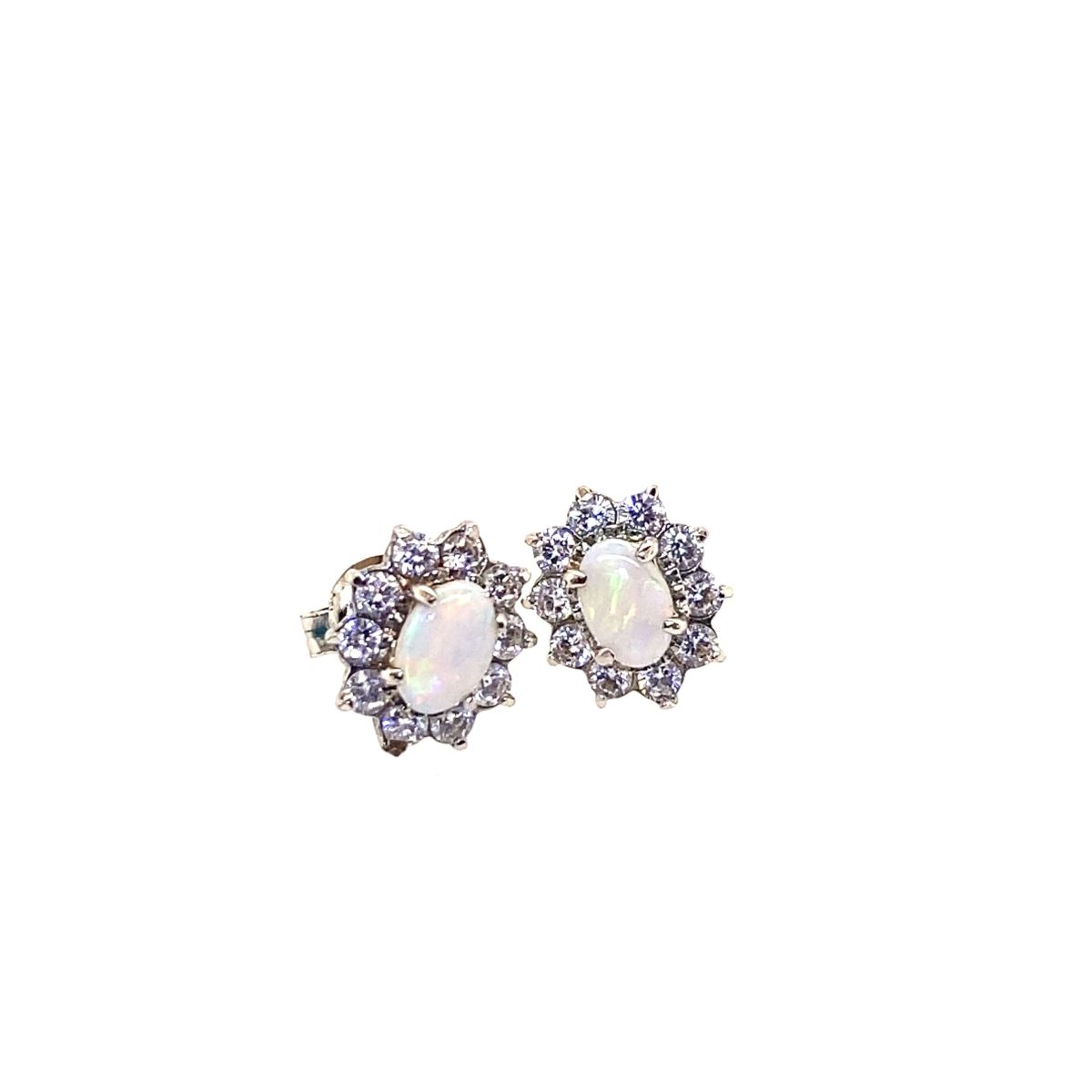 Sunflower- Sterling Silver Solid White Opal Earring 326