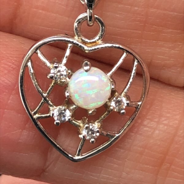 My Heart Sterling Silver Solid White Opal Necklace 385s/s