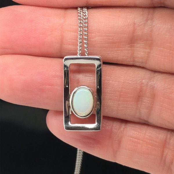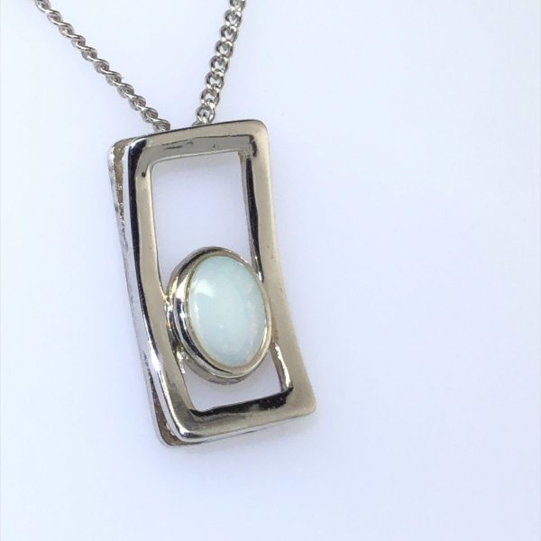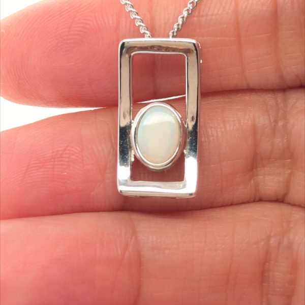 Silver Solid White Opal Necklace unisex 365