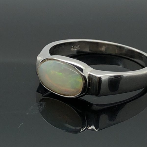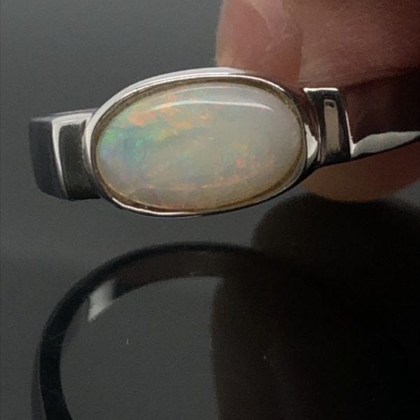 Silver Solid White Opal Ring 065 Ringsize S(UK,AU)