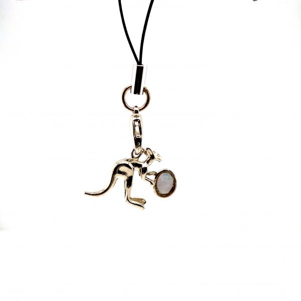Metal :Kangaroo with sliced opal keyring. Also available as a rope strap.